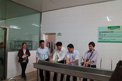 杨厅长一行洗手消毒 准备进入无菌车间
